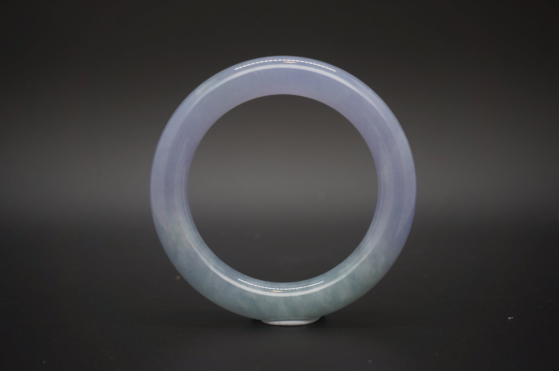This bangle is a captivating expression of natural beauty and refined stillness. Crafted from translucent jadeite, its seamless gradient shifts from soft lavender to fresh green—like dusk settling over a tranquil garden. This elegant interplay of cool hues evokes serenity, balance, and quiet transformation.