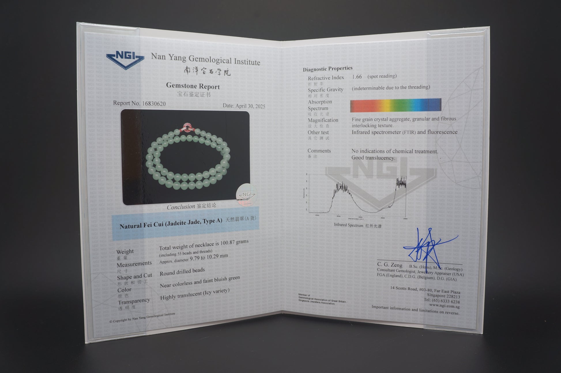 Icy Variety Light Green Jadeite Bead Necklace 高冰晴底翡翠珠串项链