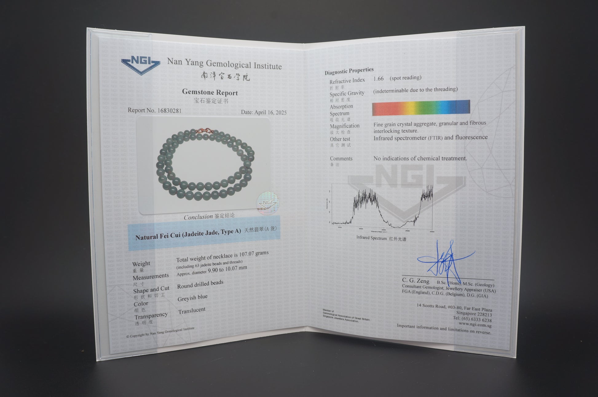 10mm Ashy Blue Lavender Jadeite Beads Necklace 卡十烟灰蓝紫翡翠珠串项链