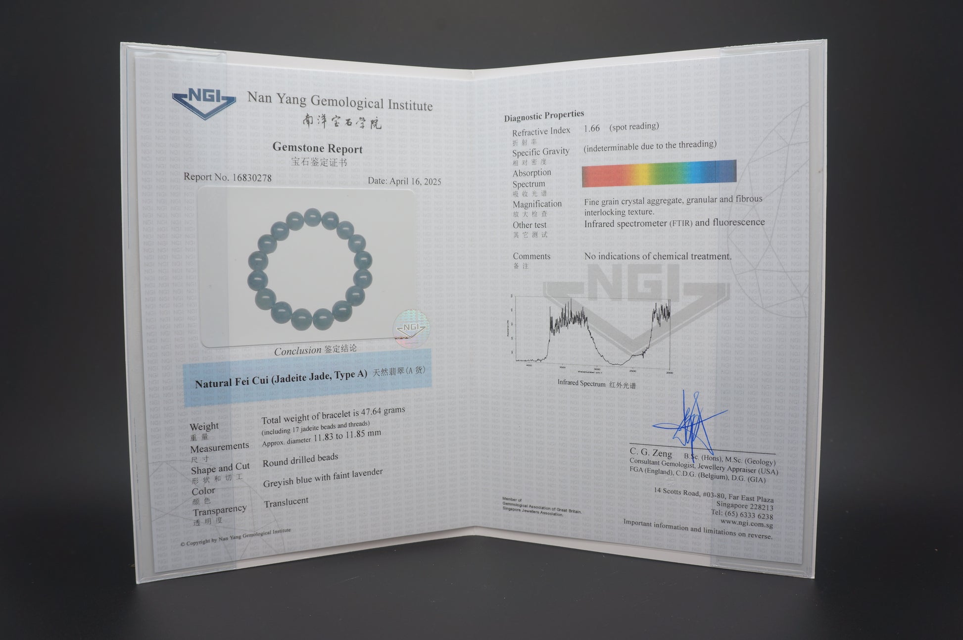 11mm Ashy Blue Lavender Jadeite Beads Bracelet 卡十一烟灰蓝紫翡翠手串