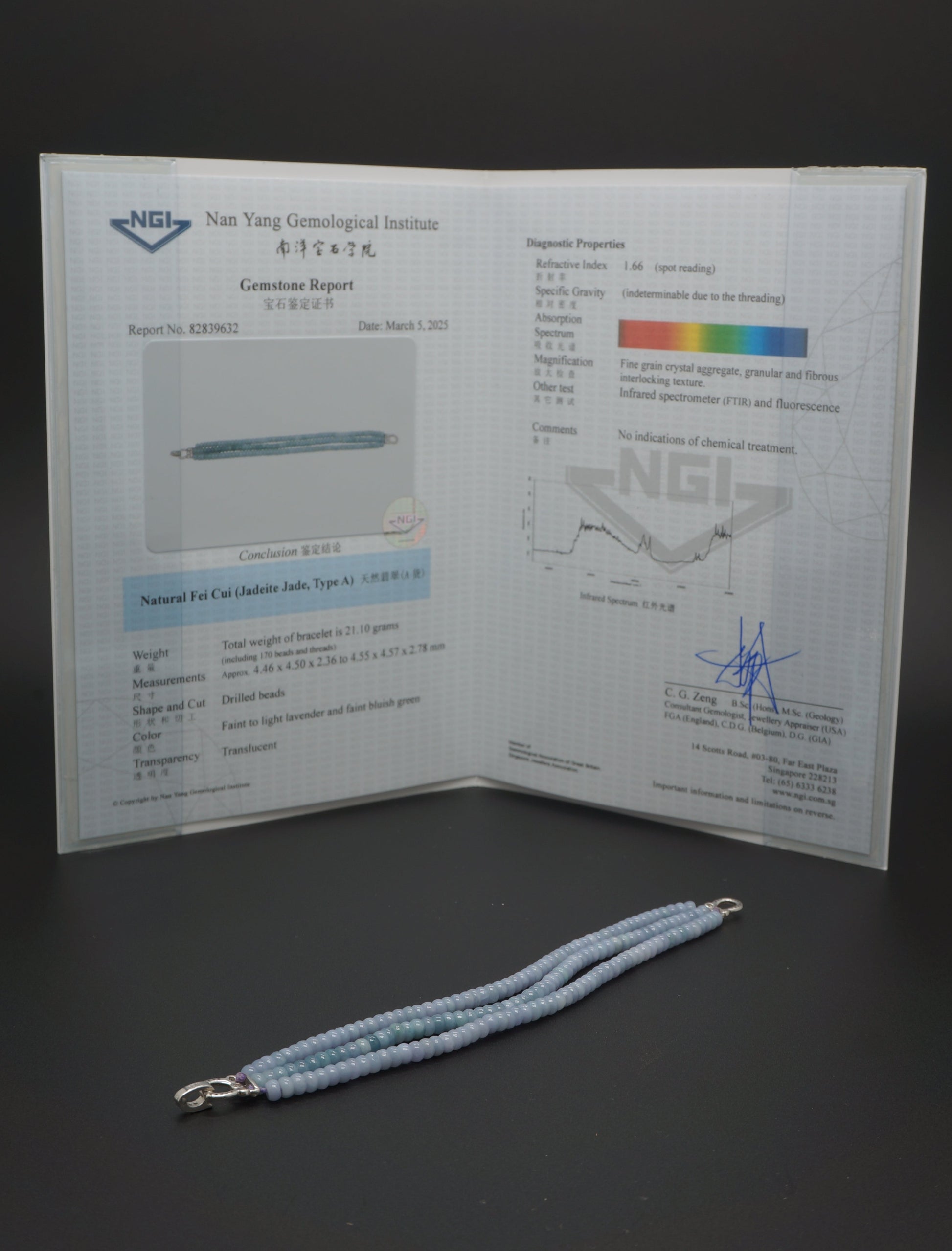 The 静谧和鸣手链 (Serene Harmony Bracelet) is a sophisticated blend of elegance and tranquility. Strung with delicately polished blue jade beads, each one shimmering softly in the light, this bracelet embodies calmness and balance. The striking clasp, encrusted with sparkling diamonds, adds a refined touch of luxury, symbolizing the harmonious union of beauty and strength.