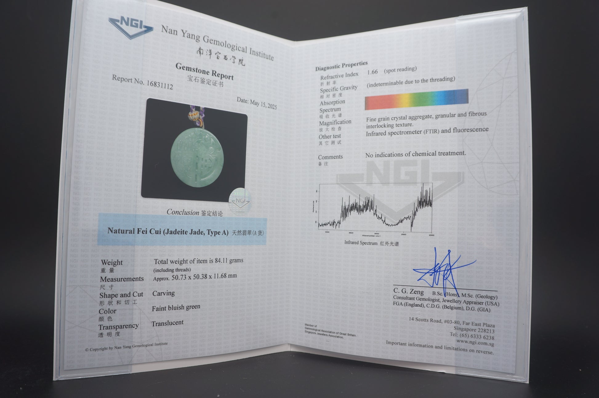 Refined and auspicious, the Harmony and Blessings Medallion brings together ancient symbolism and fine jade artistry. The circular form represents unity and fulfillment, while the carved motifs and script convey wishes of prosperity and peace. Hand-polished to a serene finish and accented by a silk tassel, this piece is ideal for those seeking meaning and balance in life. A timeless emblem of tradition and grace—ideal as a meaningful gift.