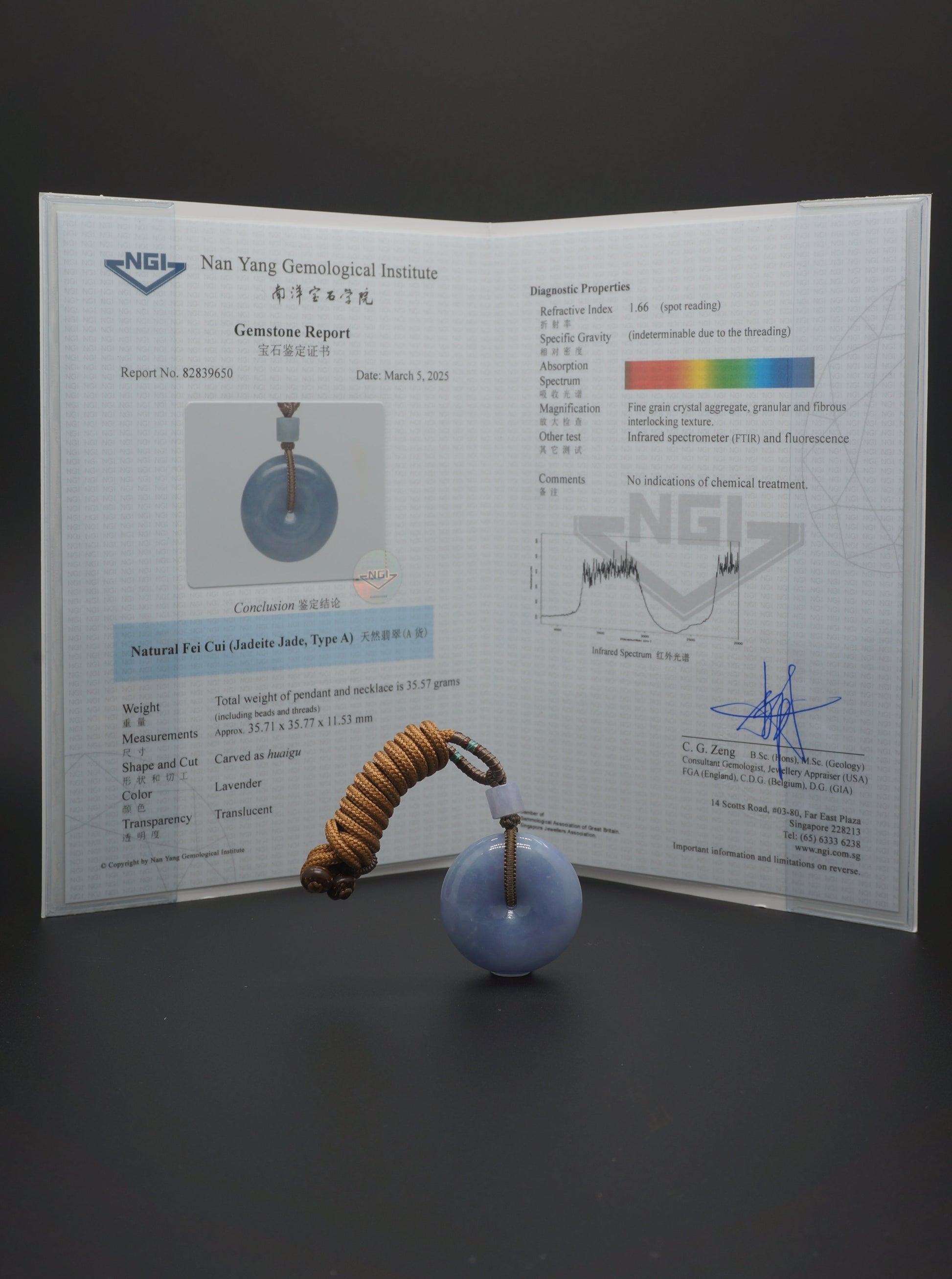 With its ethereal hues of lavender-blue and flowing natural veining, the Moonshade Harmony Pendant is a graceful meditation on stillness and strength. Carved in the traditional Ping An Kou shape, it offers a sense of inner peace. The soft gleam of jade reflects light like moonlight over calm waters — tranquil, luminous, and deeply grounding. Perfect for those who seek elegance with soul, this pendant has a gentle harmony of emotional clarity.